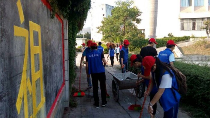 本学期,我院志愿服务队伍已在学校开展了6次大型的校园清洁服务活动,于10月13日下午4时30分,150多名志愿者们再一次穿上志愿者服、戴上口罩、手持清洁工具分布在校园的各个卫生死角进行第7次校园大清洁活动。