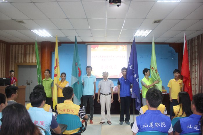 7月14日,汕尾职业技术学院2015年大学生暑期“三下乡”社会实践活动启动仪式在科学楼多媒体教室隆重举行。学校党委委员傅凤龙、思想政治理论课教学部主任龚亚东、学生处处长谢创雄及学生处团委等相关人员出席仪式,各系团总支书记、社会实践指导教师以及暑期社会实践学生代表100多人参加启动仪式。学院团委书记林祖参主持启动仪式。