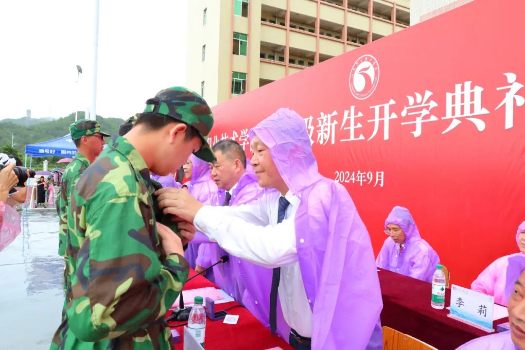秋雨伴开学,奋进正当时。9月23日上午,汕尾职业技术学院举行2024级新生开学典礼暨军训总结表彰大会,共同见证2735名新生在汕职书写新的人生篇章。学校党委书记林来平,校长蔡昭权教授,武警汕尾支队参谋长罗祖恩,学校领导班子成员,学生处、教务处、保卫处、团委负责人和各学院党政负责人,全体承训教官、全体辅导员以及2024级全体新生参加大会。大会由学校党委副书记、工会主席吴方晖主持。