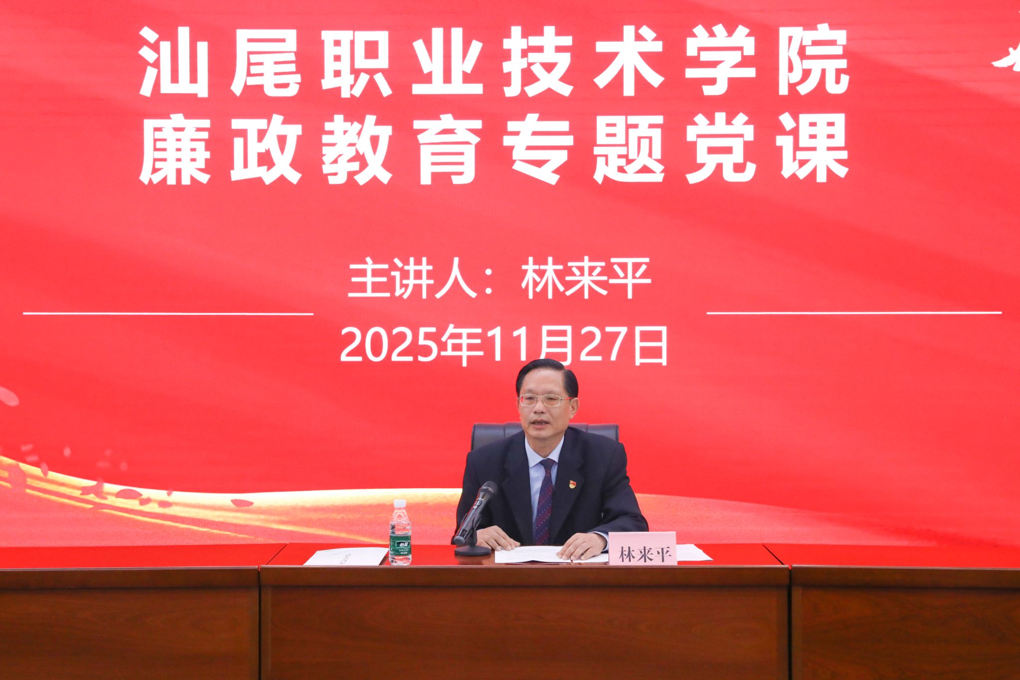 随后,学校党委书记林来平在廉政教育基地会议室,结合警示教育主题为全体党员干部讲授廉政教育专题党课。