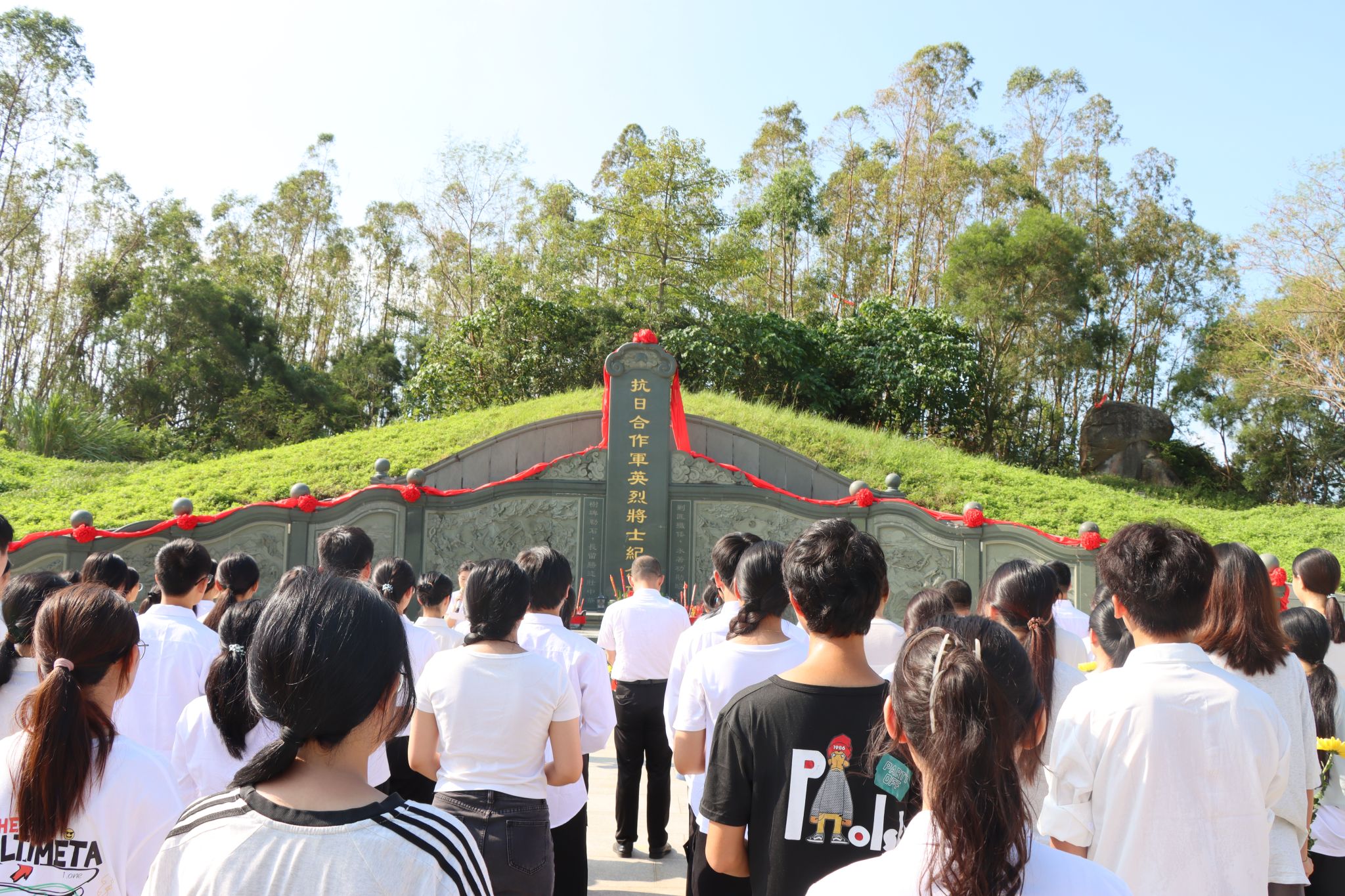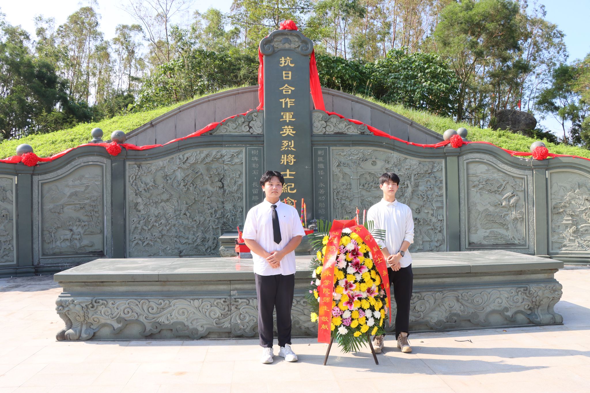 2025年9月30日,我国迎来第12个烈士纪念日,恰逢中国人民抗日战争胜利80周年。历史长河奔涌,精神之光不灭。为缅怀先烈功勋,赓续红色血脉,我校马克思主义学院联合学生处、校团委在红海湾抗日合作军英烈陵园举行“铭记英烈志,薪火永相传”主题教育活动。学生处、校团委,马克思主义学院相关负责人及46名师生代表肃立青山之下,共寄哀思,同铭初心。