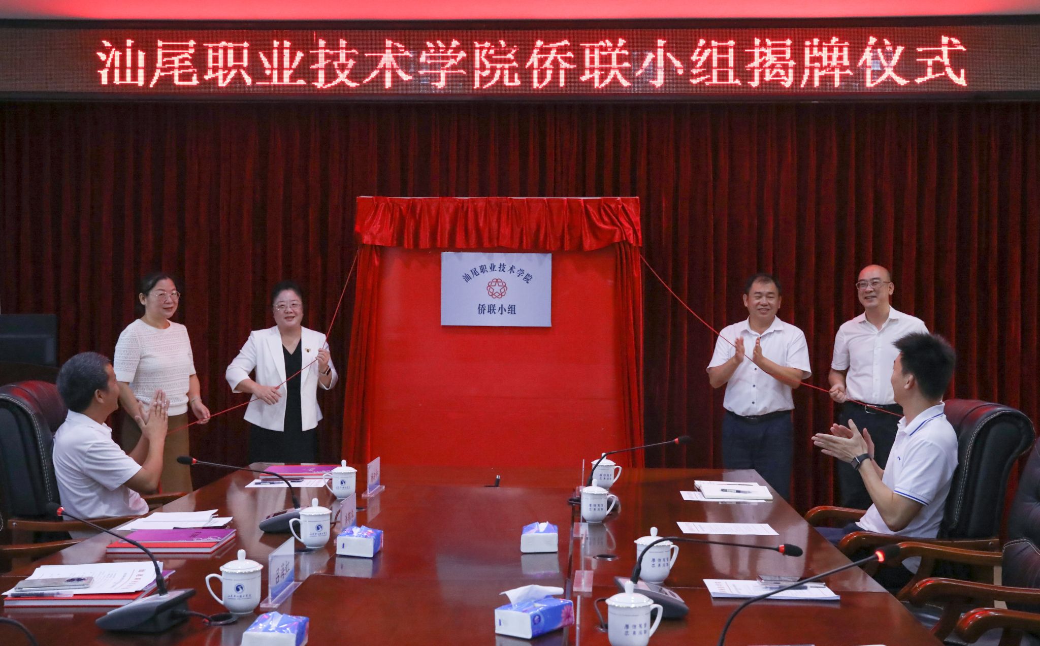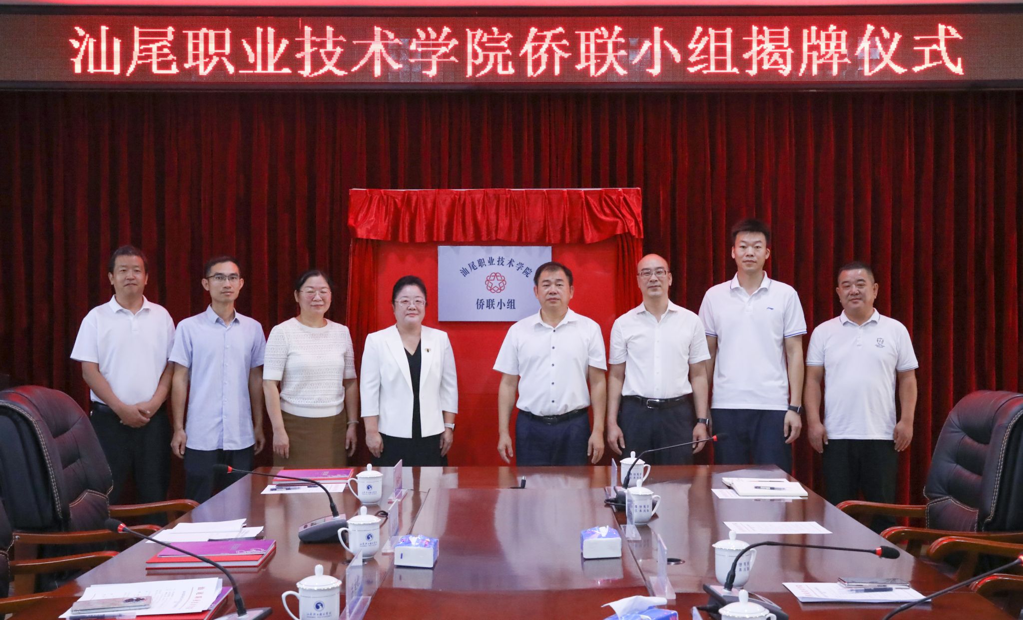 随后,双方领导共同为汕尾职业技术学院侨联小组揭牌。