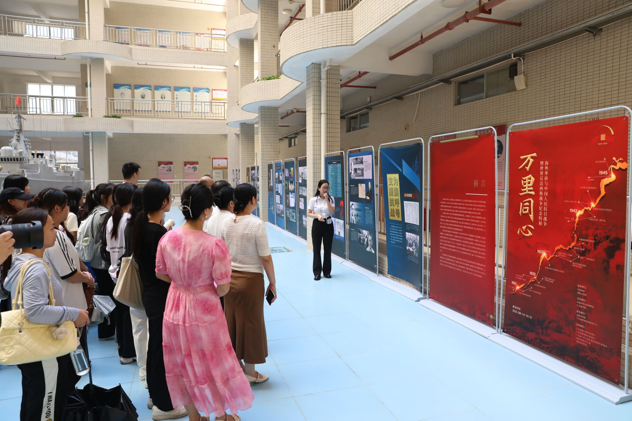 仪式结束后,与会人员前往求真楼一楼观看《万里同心——海外华侨与中国人民抗日战争暨世界反法西斯战争纪念特展》。