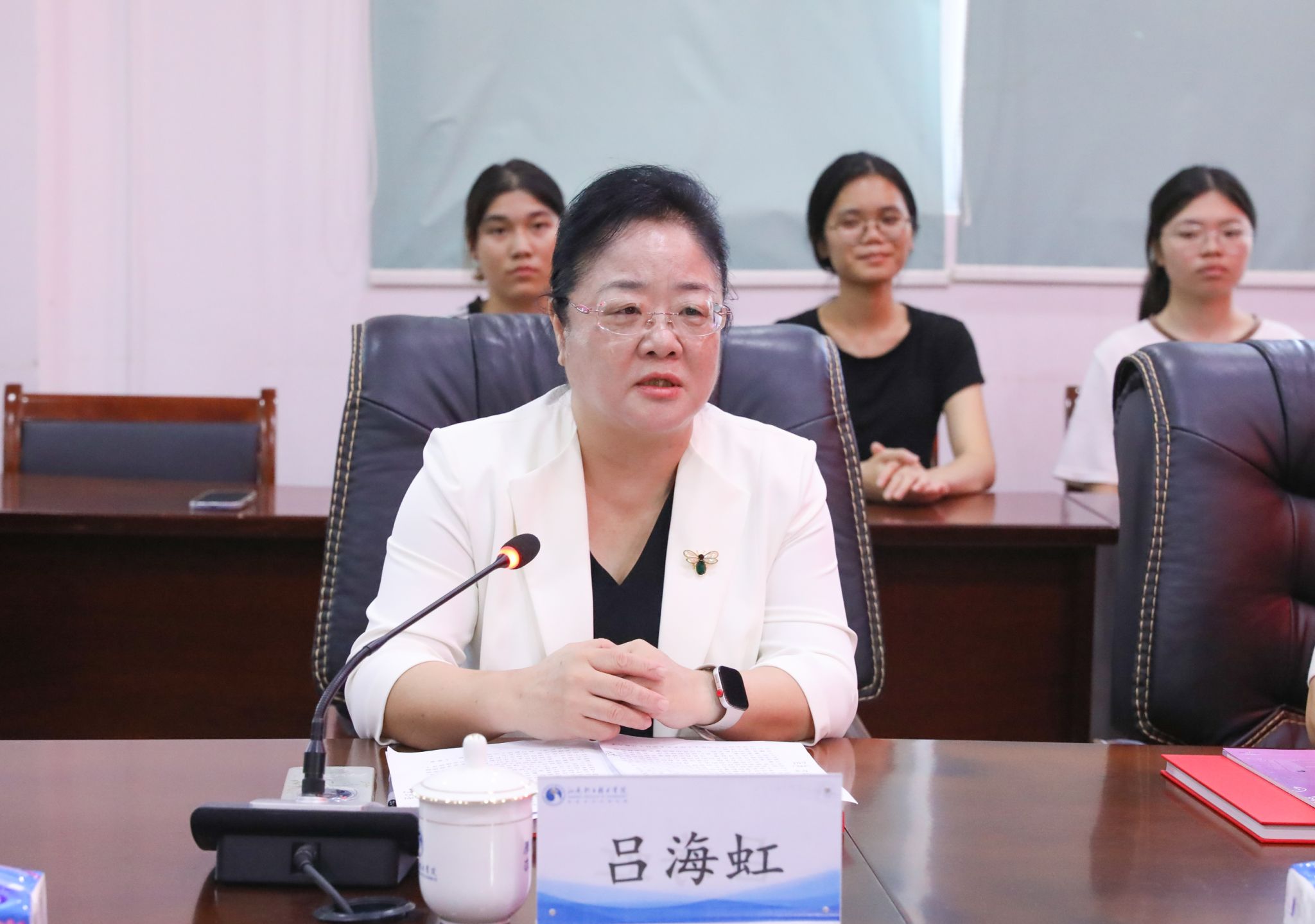吕海虹代表汕尾市侨联向学校侨联小组的成立表示祝贺,她指出,汕尾是全省重点侨乡之一,现有旅外华侨华人和港澳台同胞140多万人。汕尾职业技术学院侨联小组的成立,是深入学习贯彻习近平总书记关于侨务工作的重要论述的实际行动,是推动侨联组织建设的具体举措,也是加强和改进我市新时代高校侨联工作的创新实践,为全市侨联工作注入了青春活力。她对侨联小组提出三点希望:一是把准“政治方向”,做侨界思想的“引领者”;二是搭好“服务平台”,做侨界需求的“贴心人”;三是激活“创新动能”,做侨务事业的“开拓者”。